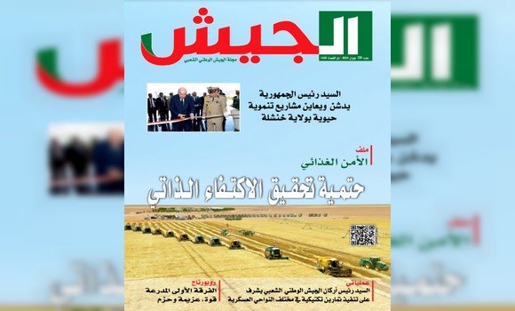 وذكرت المجلة في افتتاحيتها لهذا العدد التي حملت عنوان “الجزائر الجديدة .. غد أفضل وآفاق أرحب”, بأن السيادة الوطنية “تصان بجيش قوي مهاب واقتصاد متطور, مثلما أكده رئيس الجمهورية, القائد الأعلى للقوات المسلحة, وزير الدفاع الوطني, السيد عبد المجيد تبون خلال زيارته الأخيرة إلى وزارة الدفاع الوطني وجدد التأكيد عليه خلال زيارته يوم 30 مايو الفارط إلى ولاية خنشلة”.