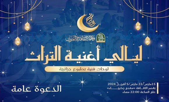 Les soirées « Nuits de la chanson du patrimoine », organisées par le ministère de la Culture et des Arts à l’occasion du mois sacré de Ramadhan, se sont ouvertes vendredi soir au Palais de la culture Moufdi-Zakaria (Alger). Cet évènement culturel verra l’organisation de plusieurs récitals et concerts animés par une pléiade d’artistes et de troupes issus de différentes wilayas du pays. La salle des spectacles du palais a abrité la première soirée de ces Nuits, animée par trois troupes de Constantine, de Mostaganem et de Biskra. Créée en 1988, la troupe mostaganémoise de Sidi Said (aïssaoua) a été la première à monter sur scène, pour interpréter un chant du patrimoine intitulé « Allah ya moulana ya Allah », suivi des titres « Sidi Abdelkader » et « Sidi Medjdoub » (deux Saints patrons de la ville), ainsi que d’autres chants aïssaoua. L’association Errachidia aïssaouia de Constantine, prestigieuse école ayant formé, 44 ans durant, plusieurs générations d’artistes et de musiciens, a présenté, à son tour, un florilège d’ibtihalate (invocations) et de baraouel dans le madih du prophète Mohamed (QSSSL), dans une ambiance ramadhanesque par excellence où les belles voix de la troupe et la musique spirituelle ont fusionné en parfaite symbiose. Dans un genre saharien authentique, la troupe de l’association El Hafoudia de Biskra, composée d’une douzaine d’artistes entre interprètes et musiciens, a choisi d’interpréter plusieurs morceaux dans le madih du prophète Mohammed (QSSSL) notamment le qsid « Ezziara » et « Leila Leila ». Ces soirées seront animées tous les vendredis jusqu’au 5 avril avec la participation de plusieurs troupes dont celle de l’association Joudhour (Fkirettes) d’Annaba, la troupe Takoucht de Tizi Ouzou et la troupe féminine algéroise conduite par Nardjes, outre les troupes Ahellil de Timimoun, El Ferda de Béchar et celle de l’Association El Hadj Mohamed El Foul Dandoun Sidi Blal de Ghardaïa.
